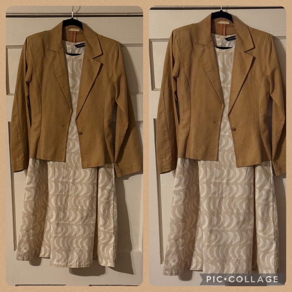 It was “Picture Day” again at my job as a Special Education Instructional Assistant at “Vermont Avenue Elementary School/LAUSD” so I decided to wear my vintage brown Calvin Klein blazer over my beige print “Marimekko x Uniqlo” dress. The brown color kept me grounded and the simple shapes were comforting during a very busy and stressful day.