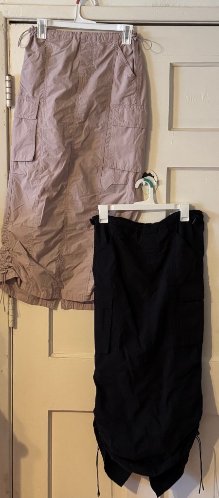 I had quite an eventful day at “Target” today working on the seventh (first draft) chapter of my book. I saw a lot of “classics” that could help any woman add to her wardrobe without breaking the bank. Two of the most valuable and practical pieces I bought were two bungee cord midi skirts, one light brown and one black, that I can wear for numerous occasions.