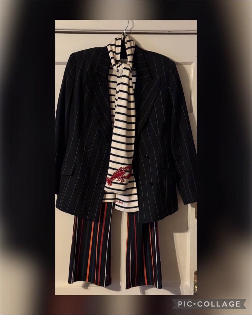 Ninety percent of this outfit was thrifted and previously loved. The jacket is from the dollar rack at “Tick Tocker Timeless Treasures” in Culver City and the “Michael Kors” top and “Shein” pants from the “Goodwill Thrift Store” on Crenshaw Blvd. in Los Angeles, California.